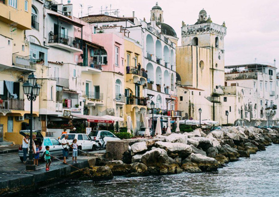 Ischia terletak di Teluk Napoli, wilayah Campania, Italia Selatan. Pulau vulkanik yang berbatasan langsung dengan pantai ini memiliki luas seitar 29 kilometer persegi dengan panorama laut Tyrhennia yang indah.