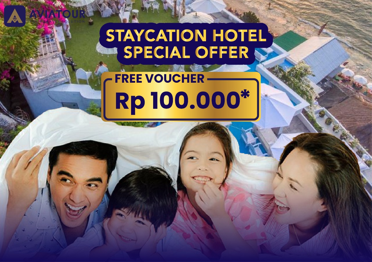 Avians ingin staycation untuk menghilangkan penat? Bisa banget! Jangan lupa, staycation-nya bareng sama Avia Tour,ya! Karena Avians bisa mendapatkan free voucher senilai Rp 100.000,- apabila Avians pesan hotelnya melalui Avia Tour 22nd Anniversary Online Travel Fair.