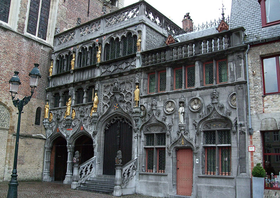 Bangunan yang terletak di sudut alun-alun kota Brugge ini merupakan sebuah basilika kecil Katolik Roma yang sudah dibangun sejak abad ke-12. Basilika Darah Kudus ini merupakan kediaman Count of Flanders. Bangunan ini terdiri dari dua tingkat dengan gaya yang berbeda. Lantai bawah bergaya romantik sederhana dengan dekorasi yang sedikit, sedangkan lantai atas bergaya gotik dengan warna yang detail. Keduanya dihubungkan dengan tangga batu bata yang membentang di sisi luar yang langsung menghadap ke alun-alun. Unik,ya!