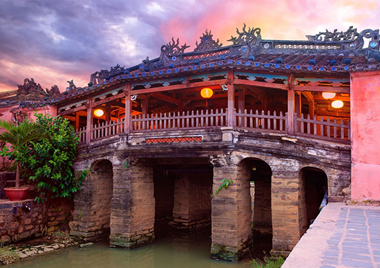 Salah satu landmark yang terkenal di Hoi An adalah Jembatan Jepang. Jembatan ini memiliki panjang 18 meter dengan arsitektur campuran gaya Jepang dan China. Unik,ya? Jembatan ini didominasi warna merah dengan atap yang berbentuk seperti atap pagoda.