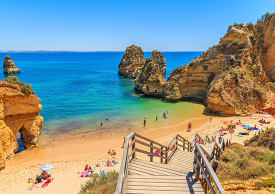 Pantai yang berlokasi di pesisir samudera Atlantik ini memiliki daya tarik tersendiri bagi para wisatawan. Avians akan menemukan tebing tinggi yang mengelilingi pantai Praia da Marinha. Uniknya, tebing yang indah ini diukir oleh erosi,loh Avians.
