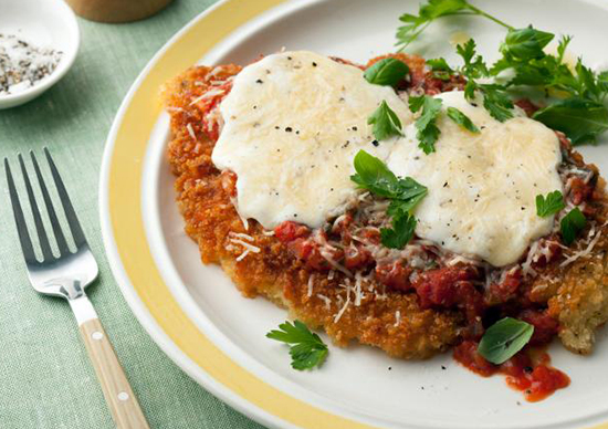 Chicken Parmigiana biasanya disajikan bersama saus yang terbuat dari tomat, minyak zaitun, bawang, peterseli, dan merica. Ayamnya yang lembut ditambah dengan gurihnya keju mozarella dijamin bikin Avians ketagihan!