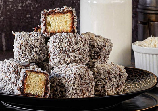 Lamington adalah kue spons berbentuk persegi yang berlapis cokelat dan kelapa kering. Avians bisa menemukan kue ini di hampir seluruh toko roti di Australia. Biasanya Lamington disantap bersama secangkir teh atau kopi.