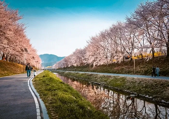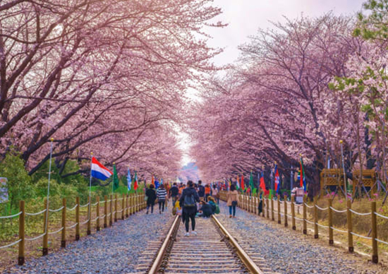 Kalau Avians ingin menikmati jalanan yang penuh bunga sakura tapi tidak terlalu mainstream, Avians bisa datang ke Gyeongui Line Forest Park. Jalan ini dibangun dari bekas rel kereta api tua yang telah diperbaiki.