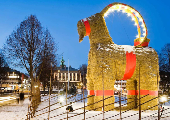 Tidak seperti kebanyakan orang pada saat hari natal, di Swedia orang membagikan hadiah tidak dengan menggunakan kostum Santa Klaus, melainkan dengan kostum Yule Goat. Yule Goat adalah symbol dan tradisi natal yang ada di Skandinavia dan juga Eropa Utara.