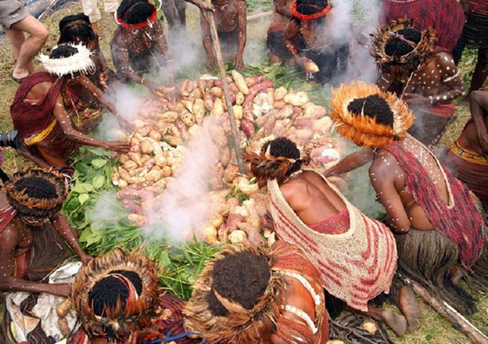 Di Indonesia, khususnya Papua, ada sebuah tradisi bernapa Barapen. Tradisi khas papua ini dilakukan dengan membakar batu untuk memasak sayur dan daging babi untuk kemudian dimakan bersama-sama dengan warga sekitar.