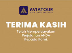 Malam hari ini tiba di Jakarta dan dengan demikian berakhirlah perjalanan Anda bersama AVIA TOUR. Semoga perjalanan ini membawa kesan manis untuk Anda. Sampai jumpa kembali di acara tour lainnya dan terima kasih atas partisipasi Anda.