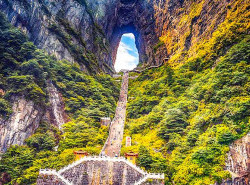 Tour hari ini,  Anda akan diajak untuk mengunjungi salah satu gunung yang dikenal sebagai gunung paling indah di dunia, Anda akan menyaksikan keindahan Tianmen Mountain (1x termasuk cable car)disini Anda bisa merasakan berjalan di atas Glass Sky Walk sepanjang 60meter. Anda juga bisa melihat keajaiban alam yang unik, Tianmen Cave (termasuk 1x eskalator) yang dikenal sebagai "Heaven Gate" (pintu ke surga). Kemudian dilanjutkan menuju Wulingyuan area untuk bermalam.