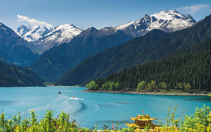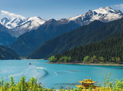 Setelah bersantap pagi dengan bus wisata menuju Tianshan Mountain (termasuk shuttle) dan Tianchi Lake (termasuk perahu) disebut juga "Heavenly Lake" adalah danau biru jernih yang terletak di sisi utara Pegunungan Bogda Shan di jajaran Tian Shan. Setelah itu anda akan diberikan waktu bebas di Wanda Mall.